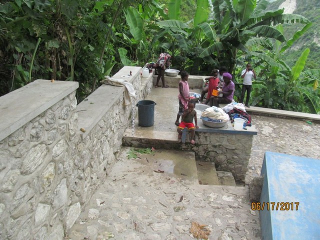 Le site est propre, protégé, agréable: un confort pour les mères, un bonheur pour les enfants…;  une belle opération, grâce à la participation de Eau du Morbihan et à nos interlocuteurs sur place: Frère Jacques, pour la coordination, et le suivi de la DINEPA. une fierté, sans conteste, pour Echanges Bretagne Haïti !
